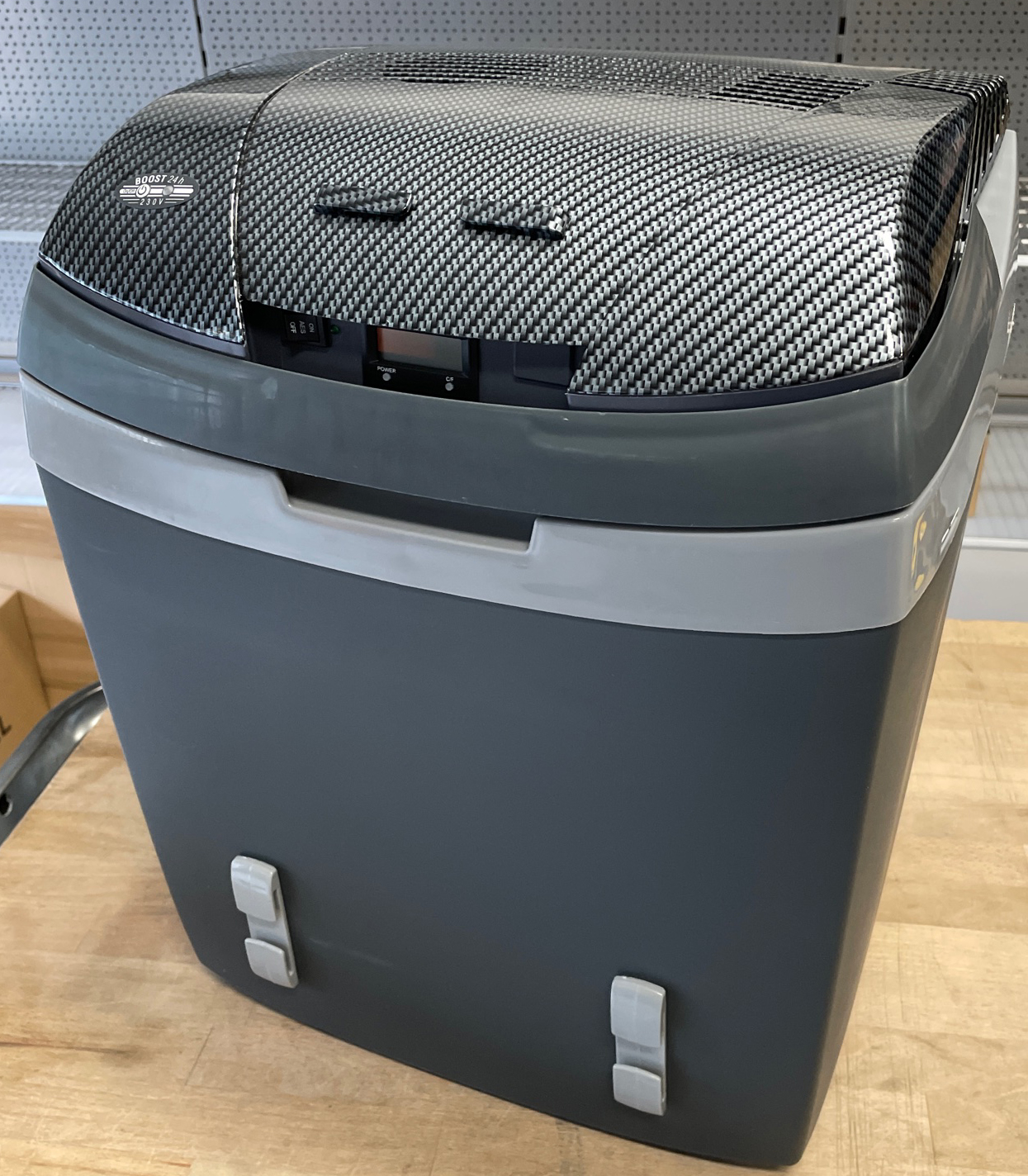 - Mit Autobatterie-Entladeschutz, LCD Temperaturanzeige und Fixierungsmöglichkeit mittels Gurtsystem