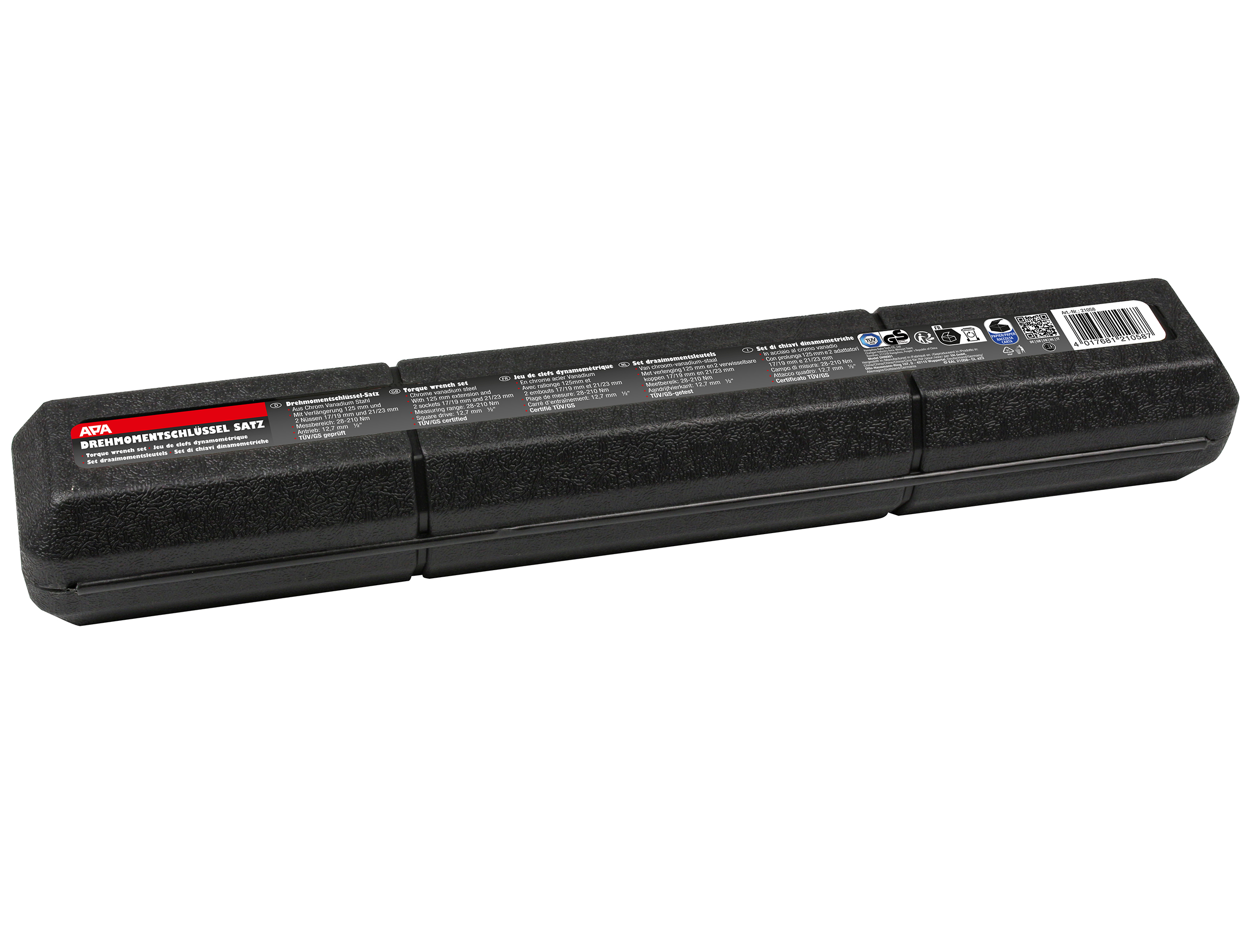 Produktinformationen "Eufab Drehmomentschlüssel 28-210 Nm inkl. Nüsse 17/19/21/23 mm + Verlängerung"