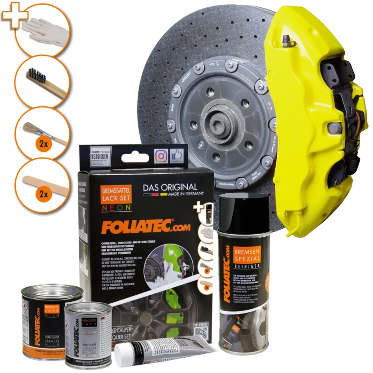 Dank der mitgelieferten Grundierung entfaltet unser Bremssattel Lack NEON eine besonders intensive Leuchtkraft.
