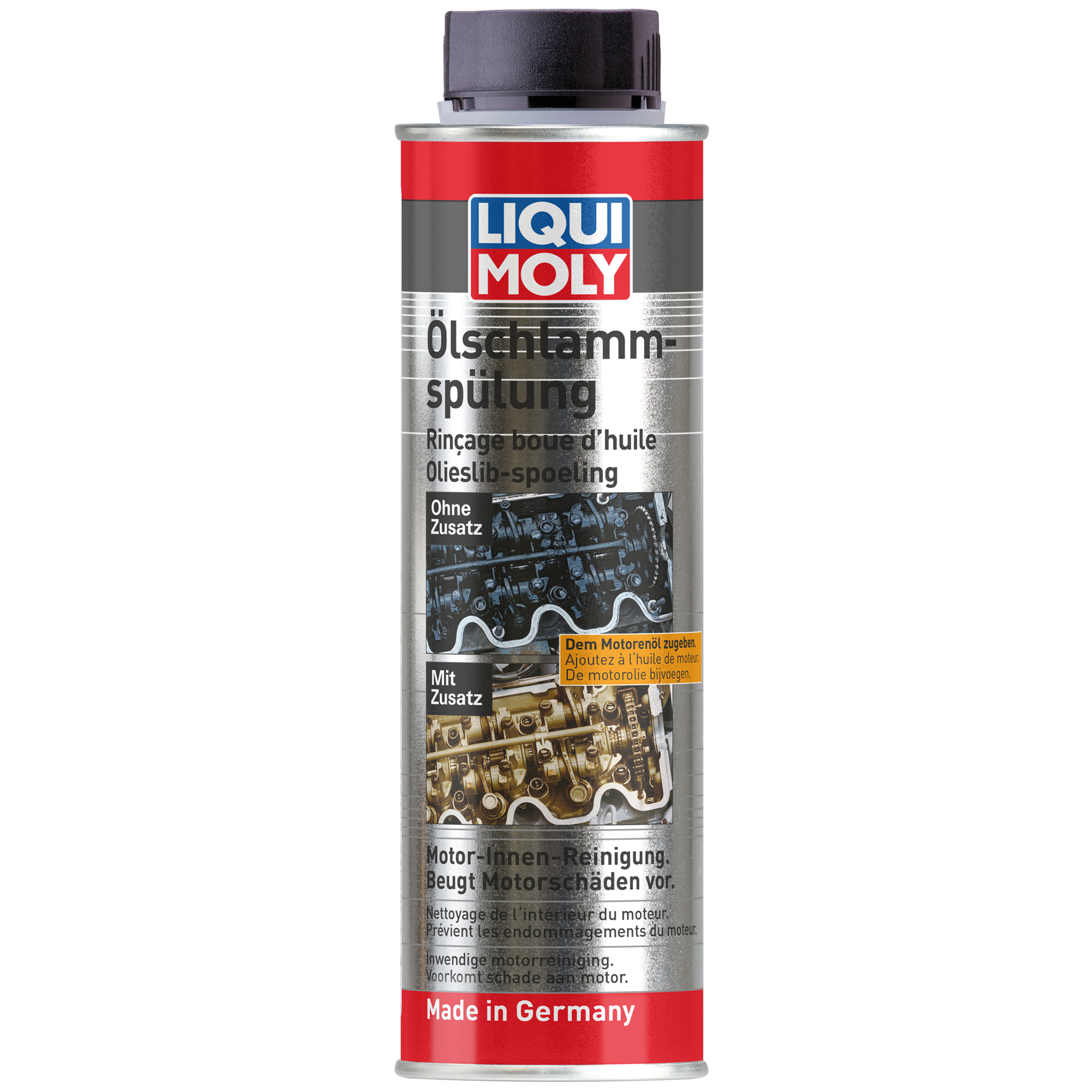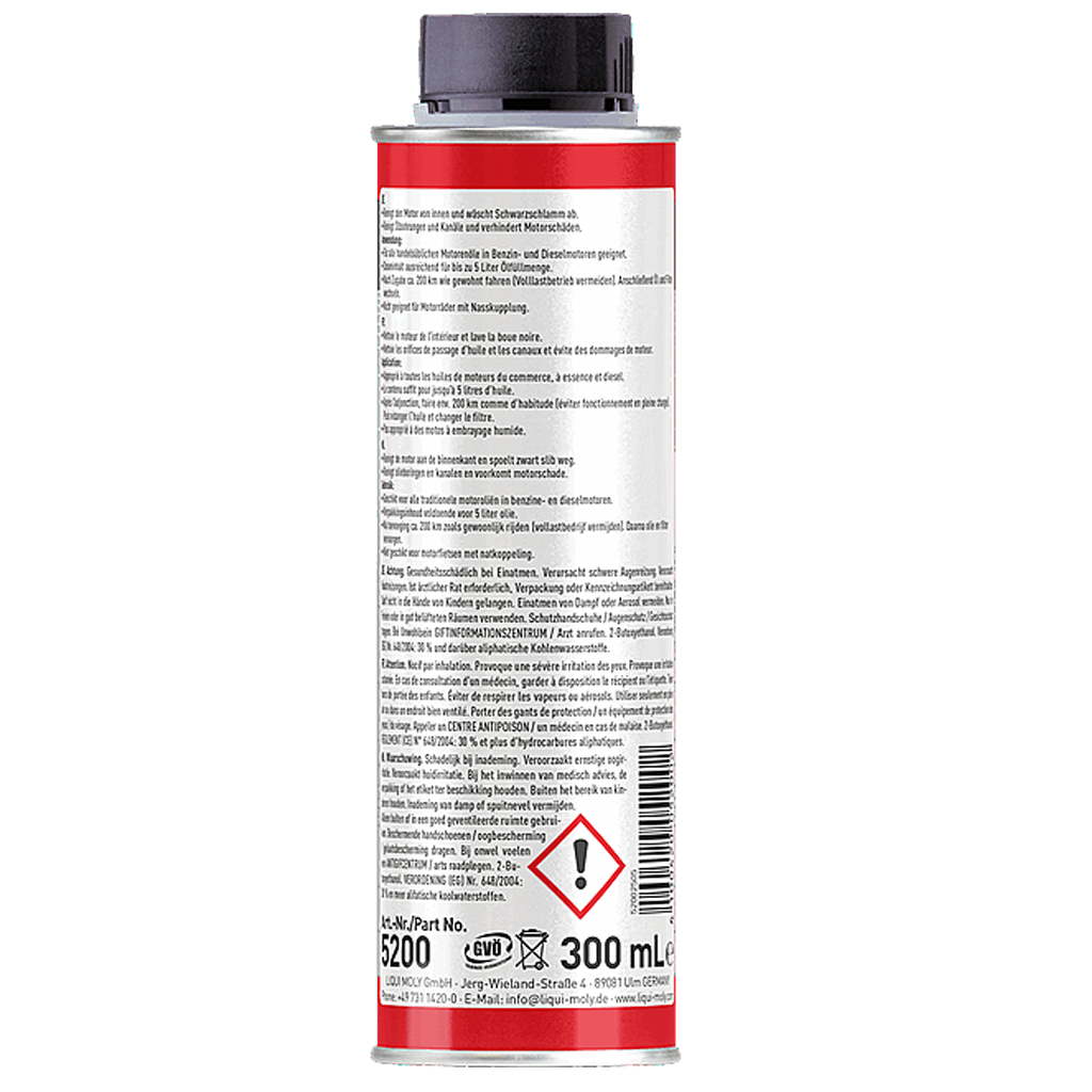 Die perfekte Lösung, um den Motor von innen zu reinigen. Wäscht Schwarzschlamm und sonstige Verschmutzungen und Ablagerungen ab. Erhöht die Betriebssicherheit des Motors und vermeidet Mangelschmierung. Reinigt schonend Ölbohrungen, Ölsiebe, Kolbenringnuten und Kanäle und verhindert Motorschäden.