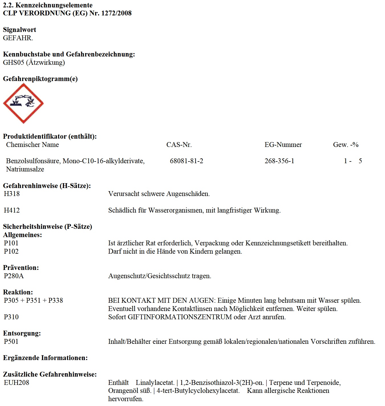 Kennzeichnung gemäß Verordnung (EG) Nr. 1272/2008