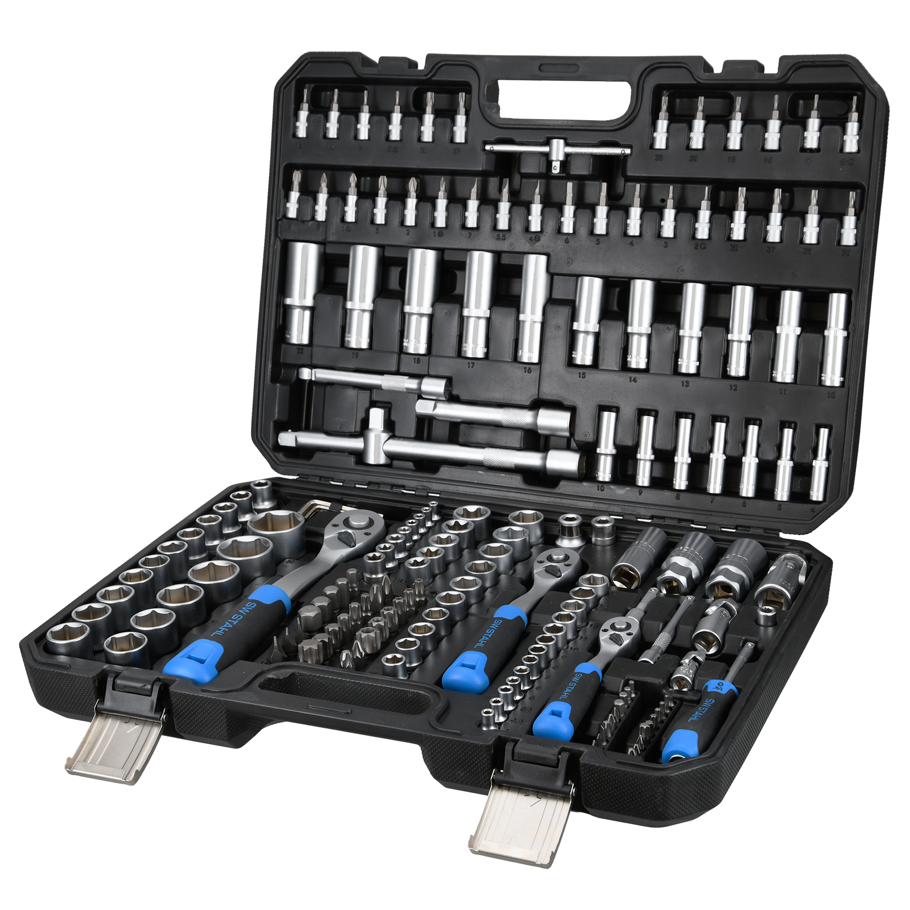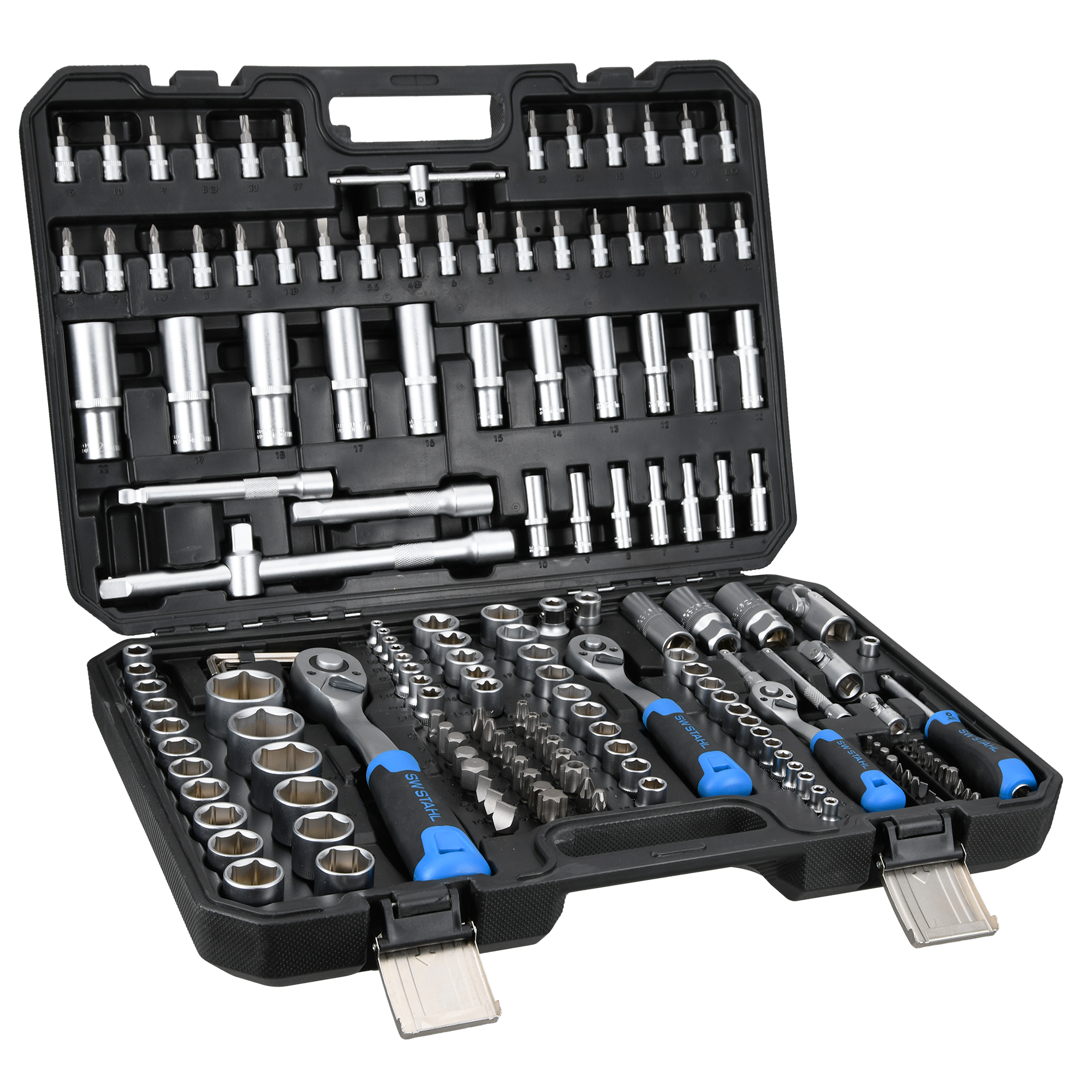 SW-Stahl Steckschlüsselsatz Knarrenkasten 171tlg 1/4" 3/8" 1/2" Nusskasten